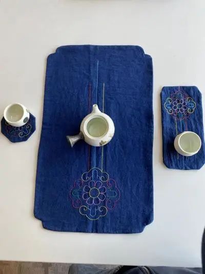 普布卓玛还专门设计了一款藏族的吉祥花团,作为样图。吉祥花团,内含祥云、大山、如意花等元素,寓意着中华民族团结大融合,更为每一位参与堆绣学习的残障伙伴送去了“如意吉祥,扎西得嘞”的祝福。据悉,本次培训中,学员们共创作了100套茶席和杯垫等刺绣作品,已被企业全数订购。