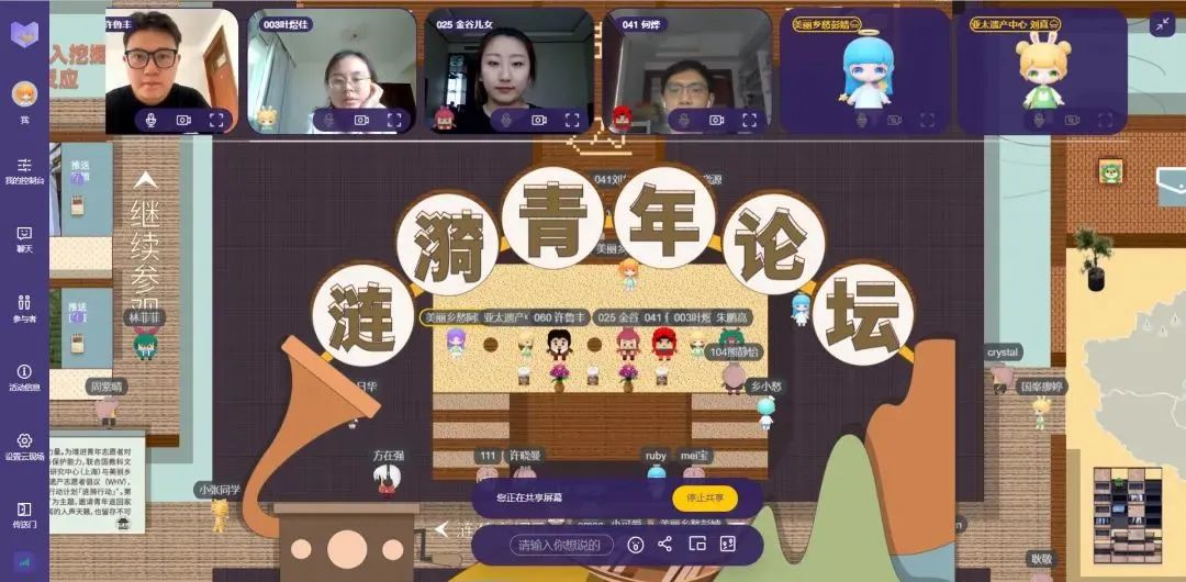一侧是乡愁邮局,以中国地图记录着淡淡思念;一侧是留声书店,“书架”上放着一本本精美的《家园一方志》;再往前走,则是涟漪影像室、时代回音壁等区域。几个年轻人一同漫步在展馆内,仿佛置身回忆的海洋……而这一幕,并非实体呈现,而是出现在“云端”,一场名为涟漪青年论坛的线上活动中。