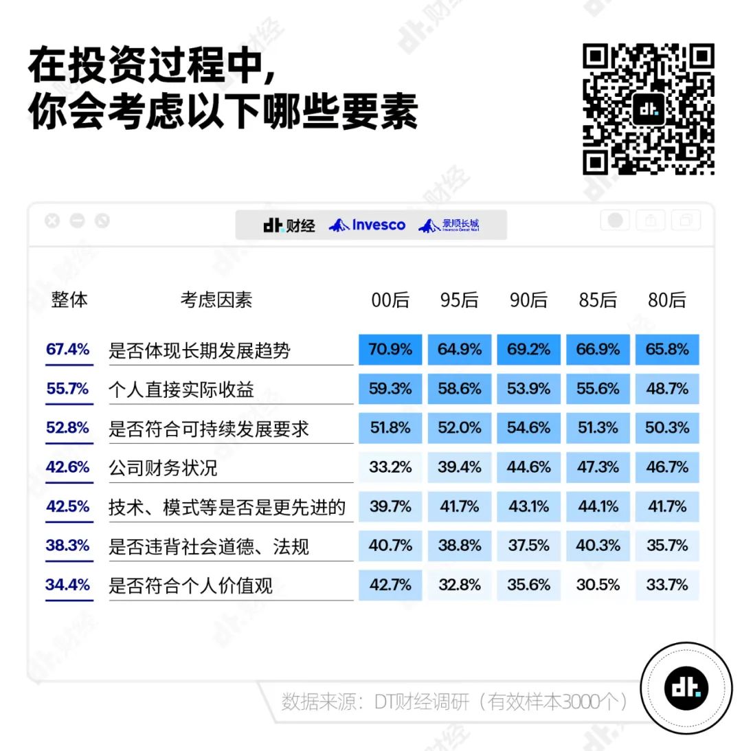 这在一定程度上说明,在投资时Z世代是相对务实和有价值观判断的一代人。