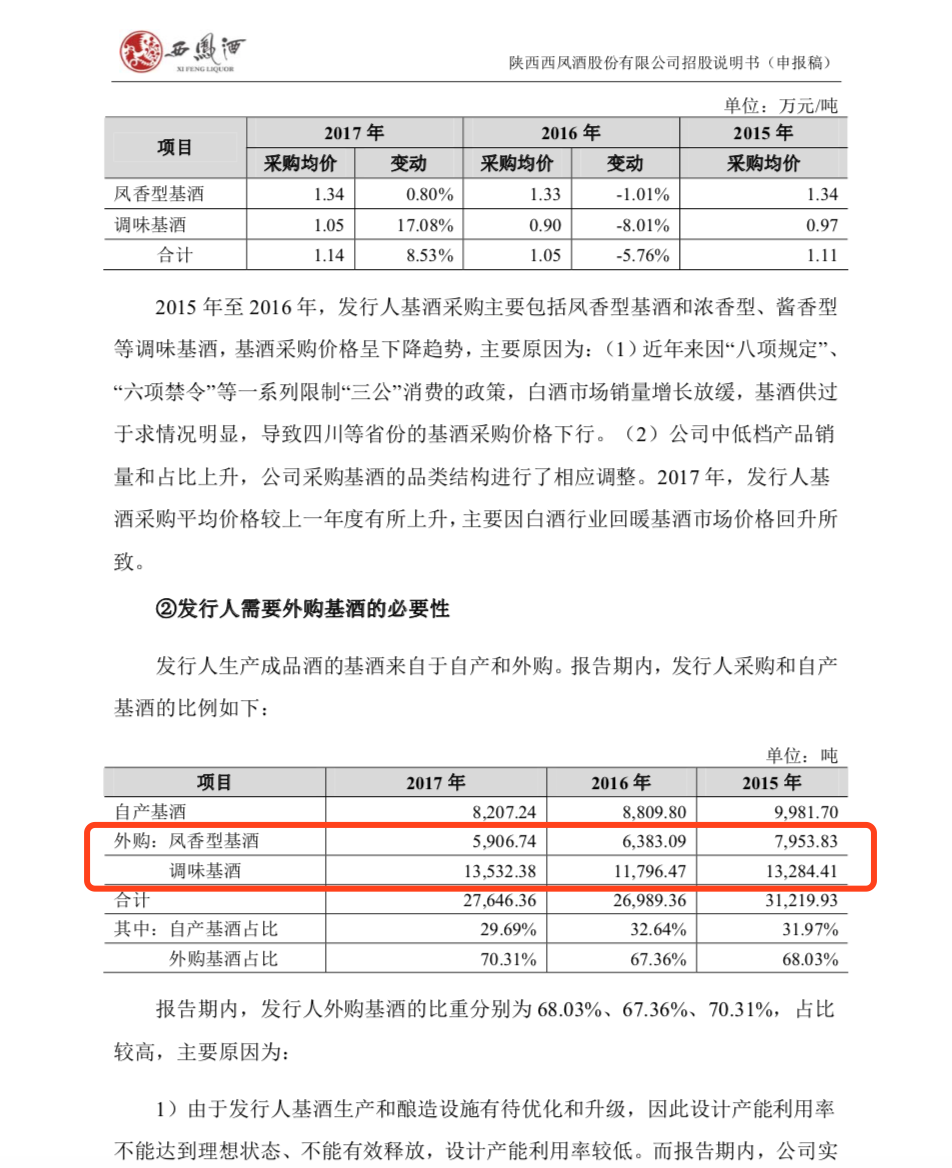 仅从西凤酒2016年及2018年版招股书中披露的数据,就可见一斑。招股书介绍,西凤酒外购基酒主要集中在四川省内,采购的类型包括凤香型基酒和调味基酒两类。