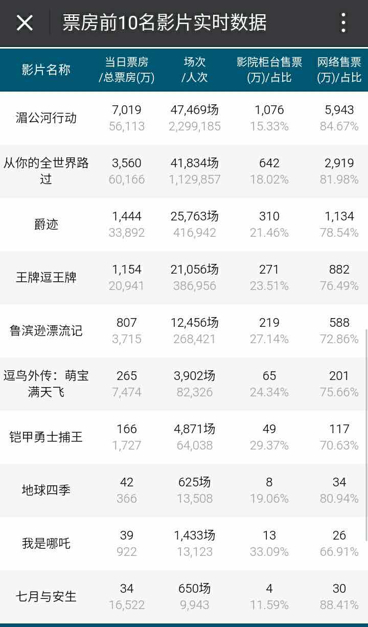 电影票房及排片电影票房数据及排片