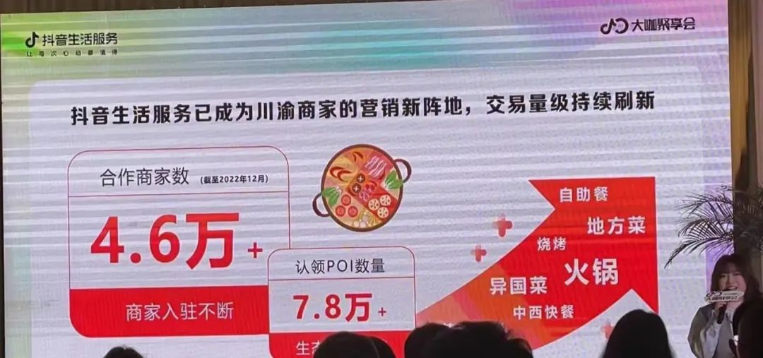 “讲了很多趋势与数据,说白了,就是立几个典型。”从流出的照片可以看到去年抖音生活服务的部分数据:2022年GMV同比增长8.4倍;产生了16.7亿个种草短视频、235个种草直播间、219万个美食SKU……