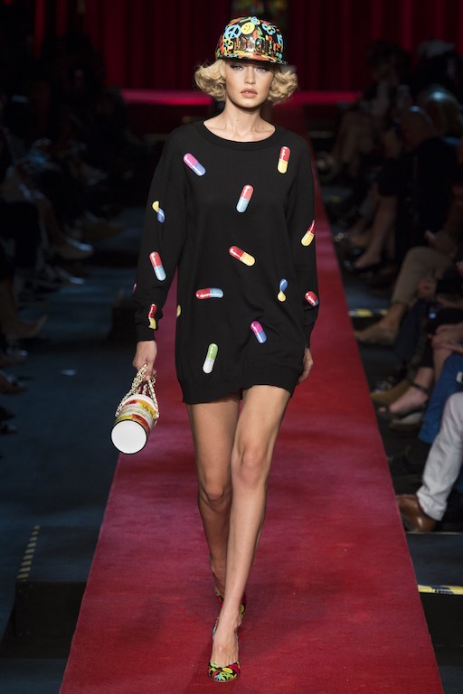 如何定义有趣的设计?对Jeremy Scott而言,除了视觉游戏,就是将时装和日常用品相结合——在Moschino 2017年春夏女装秀上,这位设计师使用了药丸、药瓶素材。发布会结束后,这个极符合当下潮流、颇具卖相的创意便被组合成一个名副其实的胶囊系列立即发售。
