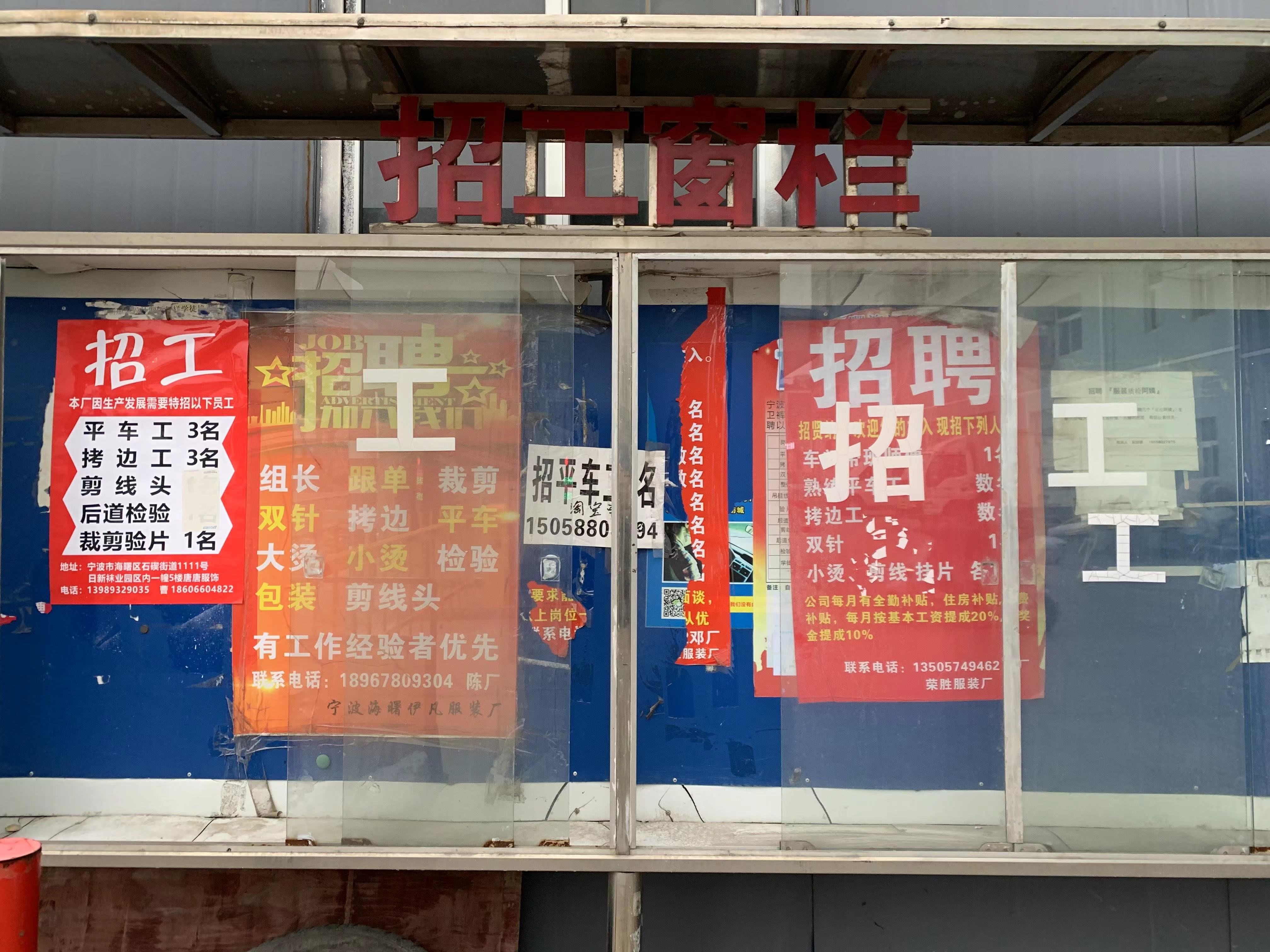 四人中年纪最小的阿强,今年20岁,进厂上班已有3年。正月十五前,许多工人还没复工,奉化街上空荡荡的。在这样的冬月里,阿强只穿了件薄外套,一上午急匆匆地转了好几个地方,没见合适的岗位。