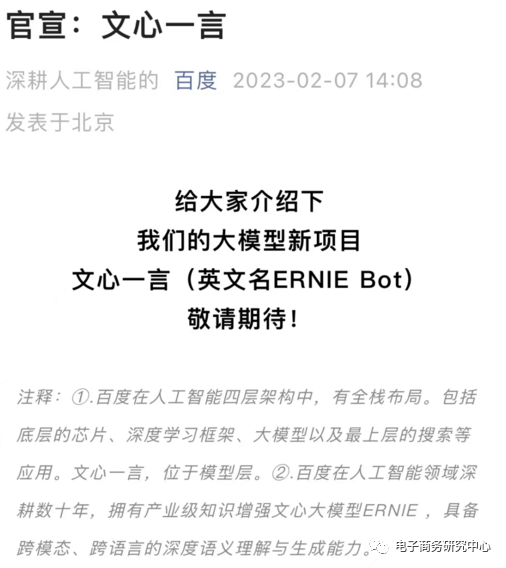 3.百度:ChatGPT项目名字 定为“文心一言”