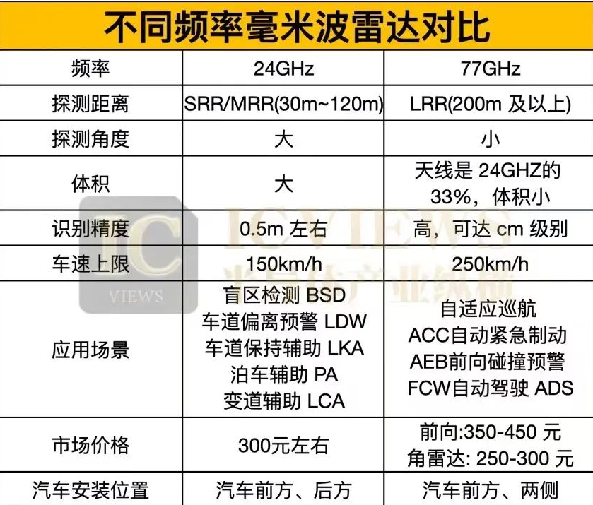 近日,汽车毫米波雷达芯片厂商们正在提供成本更低的 77GHz毫米波雷达,以加速毫米波雷达从 24GHz 到 77GHz 的过渡。此前由于规格差距较大,商场上77GHz 雷达芯片的价格至少是 24GHz 的两倍。