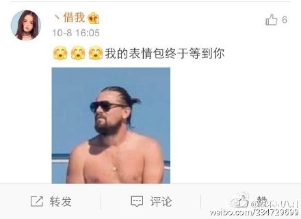 为了认真地欢迎小李子,真爱粉们纷纷拿出了最具中国特色的社会主义土特产——表情包。
