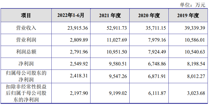 招股书显示,公司聚焦于现制饮品配料的研发、生产和销售,主要产品包括饮品浓浆、风味糖浆、饮品小料等。2019年至2022年1-6月,公司实现营业收入分别为3.93亿元、3.57亿元、5.29亿元和2.39亿元,同期实现归属于母公司所有者的净利润分别为8012.27万元、6871.91万元、9547.26万元、2418.31万元。公司主营业务收入由饮品浓浆、风味糖浆、饮品小料等收入构成。报告期内,饮品浓浆收入,为公司主营业务收入的主要来源。2019年至2022年1-6月,饮品浓浆收入占主营业务收入的比例分别为62.80%、61.22%、60.31%和57.27%。
