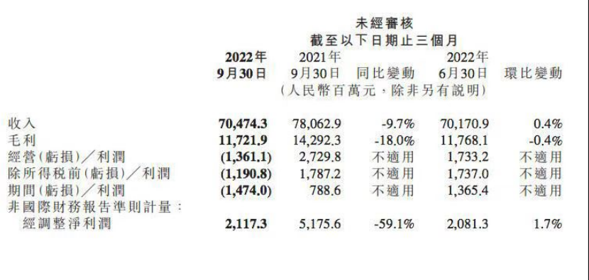 小米Q3财报数据显示,该季度营收705亿元,同比下滑9.7%;继2022年一季度,再次录得单季净亏14.74亿元,经调整净利21亿元,同比下滑59.1%。这是小米上市以来首次连续三季度营收、净利同比双双下滑。