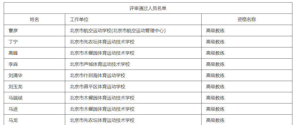 2月13日,北京市人社局网站公布《2022年北京市高级专业技术资格评审结果公示第26号(体育教育员副高级)》。文中提到,北京市体育教练员系列高级专业技术资格评审委员会于2022年12月27日召开会议,19人通过了高级教练专业技术资格评审,其中包括我国乒乓球名将马龙、丁宁。(北京日报)