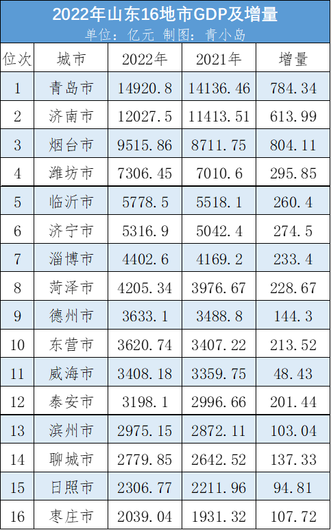 山东各地2022年经济数据均已公布,16地市的位次就此排定。