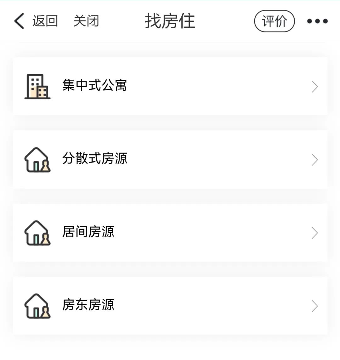 查阅各大租房渠道,杭州租房市场房源主要由房东散租、中介托管、机构化租赁企业和政府推出的公租房&廉租房组成。以官方渠道e房通为例,界面清晰展现了集中式公寓、分散式房源、居间房源和房东房源四大类别,并在下一级页面按照区域、租金、 白名单企业、公寓特色和品牌做进一步的信息展示。