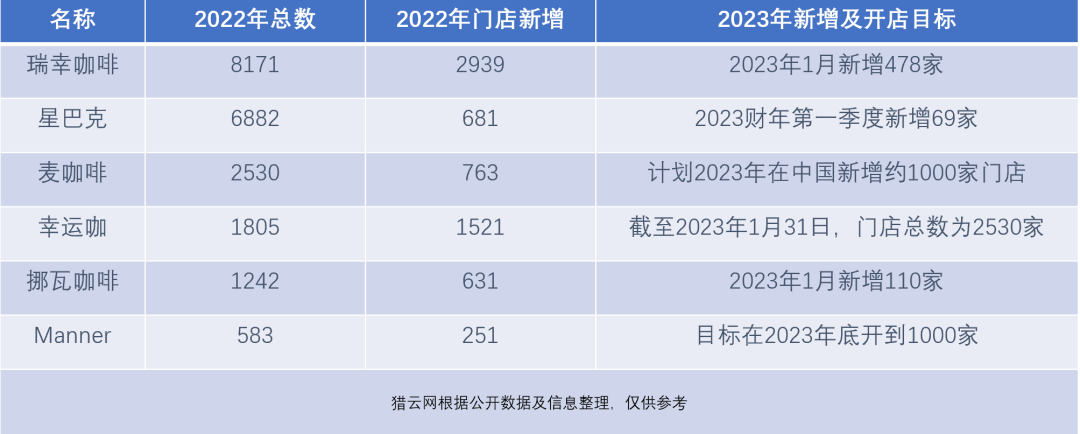 星巴克掌门人舒尔茨认为,疫情后消费将迎来一大波复苏,这将有助于星巴克实现在三年后在中国开出9000家店的愿景;1月,瑞幸一路狂飙,新增门店478家,和2022年第四季度开店总数持平,1月30日,瑞幸开启2023年度首轮新零售合作伙伴招募计划;创立于2019年的NOWWA挪瓦咖啡,近日宣布新开110家门店……战火味弥漫开来。