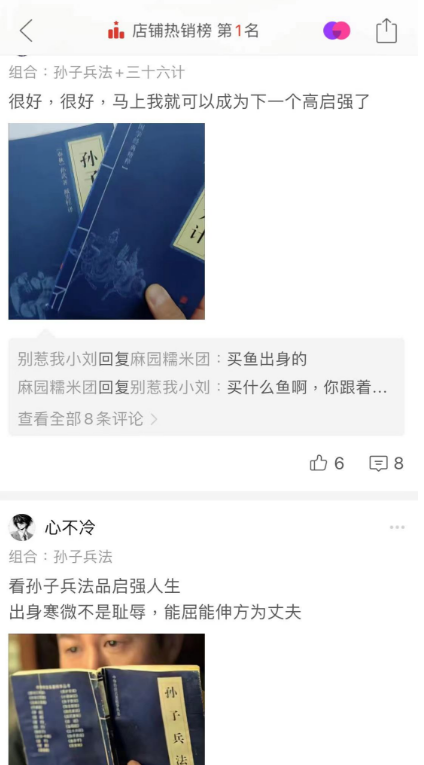 《孙子兵法》的知名度也基本齐平四大名著了,只要是中国人没有不知道的,但这么多年卖脱销还是第一回。难道真是被狂飙带起来的知名度吗,只是消费者被狂飙带动了情绪,激情买入罢了。“买《孙子兵法》不是因为我想看,而是因为我喜欢狂飙!”