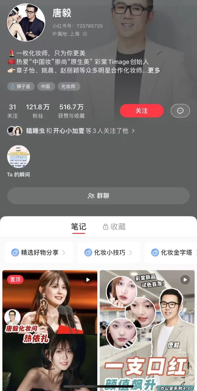 @唐毅 以妆教干货吸引用户关注,在他的妆教视频中,出镜最多也是彩棠的产品,是品牌行走的代言人。创始人作为专业化妆师能够持续分享专业内容,自带流量且容易拉近品牌与用户的距离。