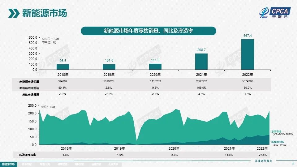 2022年电动车市场的火爆,超出了很多人的预料。国内新能源狭义乘用车全年累计销量达到567.4万辆,同比增长90.0%,渗透率攀升至28%,而纯电车型在其中就占到了75%左右的份额。在不少业内人士看来,如果丰田再不下定决心,可能真的要错过这个窗口期了。