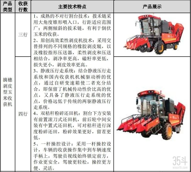 图1:部分收割机产品介绍 图片来源:英虎机械招股书