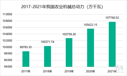 图3:2017-2021年我国农业机械总动力(万千瓦),数据来源:国家统计局