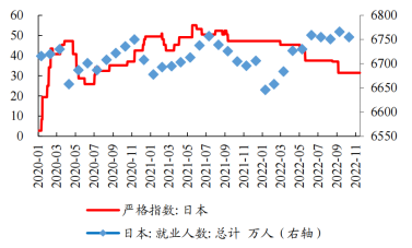 但伴随着日本逐步放开防疫政策后,就业人数重新回到正轨。