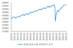 2020年4月,在美国疫情管控最为严格的时期,非农就业人数下降至低点1.3亿人,较2019 年底下降 16%。而在2021年4月,美国政府宣布境内旅行无需进行检测和隔离后,就业快速回暖。至2022年10月,美国非农就业总人数已较 2019年同期增加0.2%,重回增长轨道。