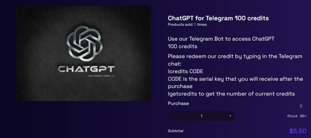 比如,黑客将OpenAI的GPT-3模型集成到即时通讯软件Telegram的通道中。凭借这种操作,黑客们就可以通过Telegram“隔空”使用ChatGPT,以此绕开安全监管。