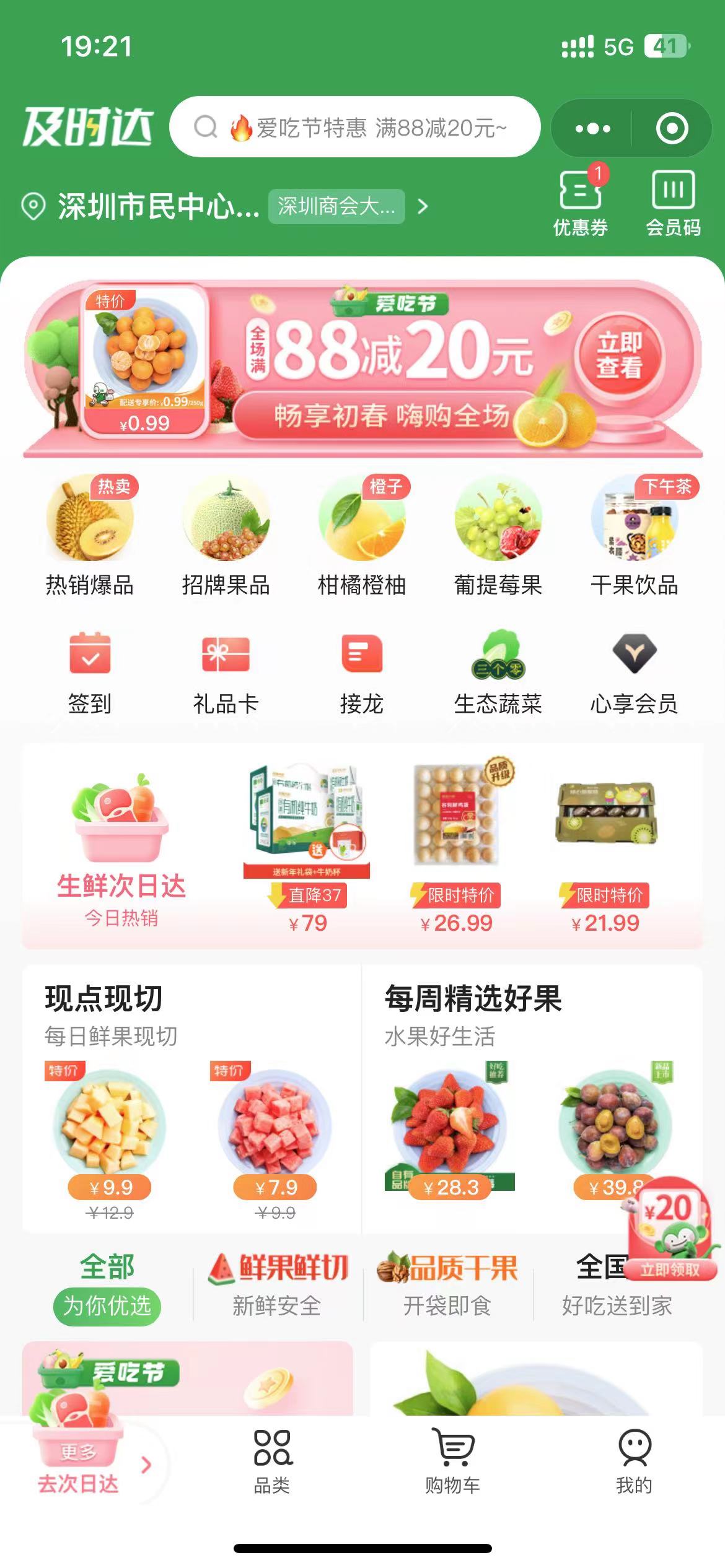界面新闻发现,“门店快送”设有美食、茶饮、生鲜、百货等类目。其中,美食茶饮类目入驻商家较多,包括绝味鸭脖、喜茶、奈雪、肯德基、陶陶居等;生鲜、百货商家数暂时较少,百货目前只有荣耀、爱婴岛等品牌。