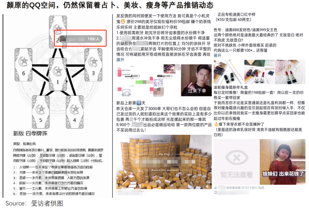 彼时正值微商的风口,社交平台上微商氛围热烈,高中生群体的大本营QQ也不例外。