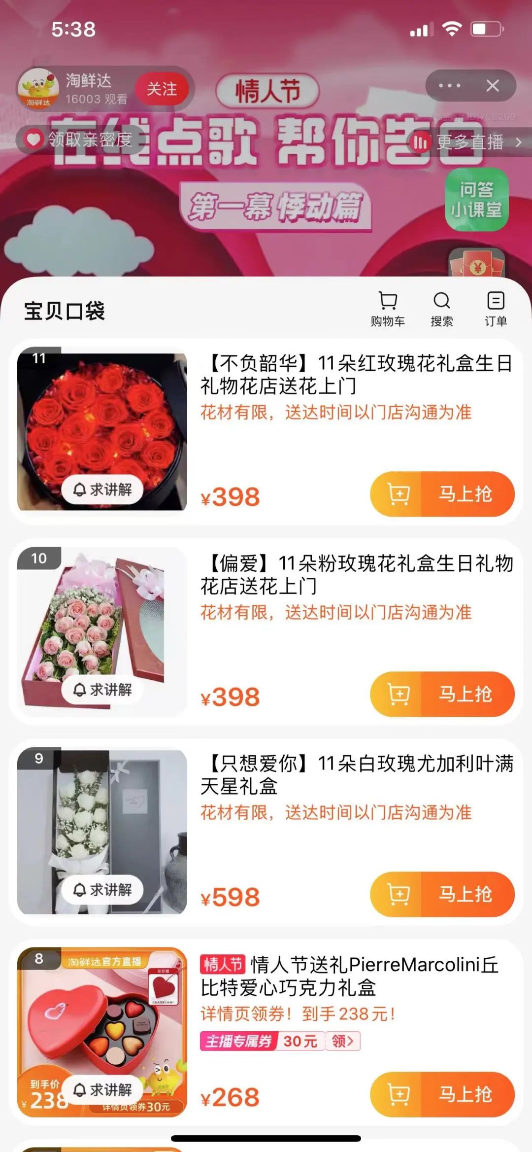 尤其是情人节的订单。
