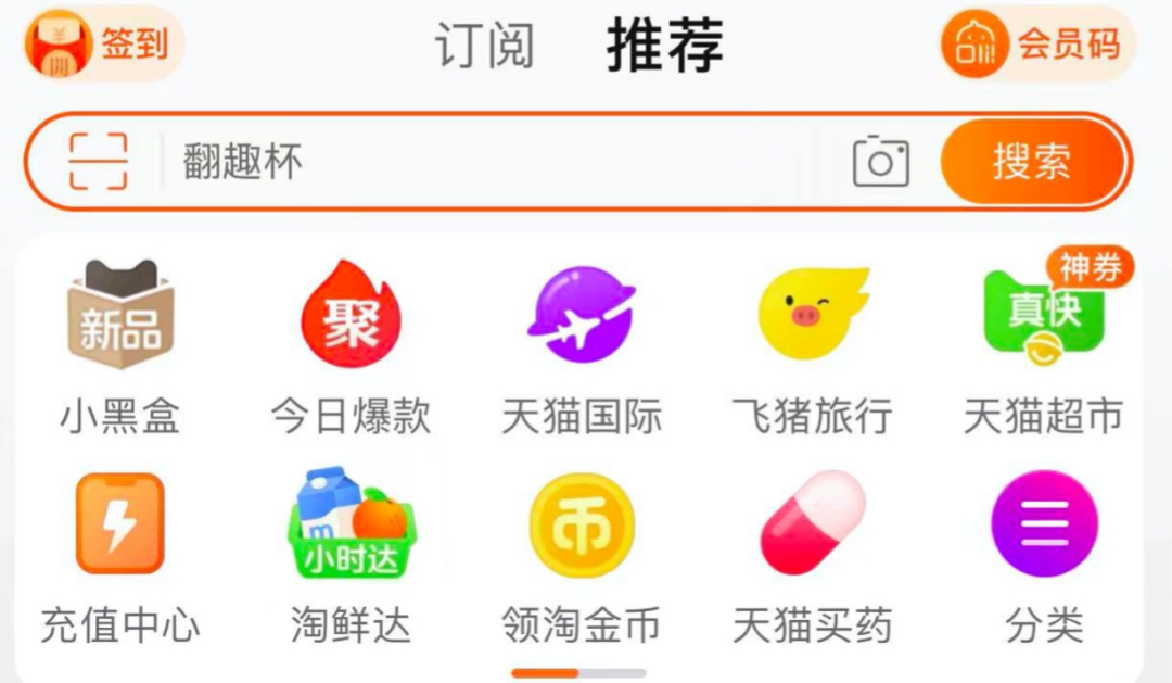 与天猫国际,飞猪旅行,天猫超市并列。