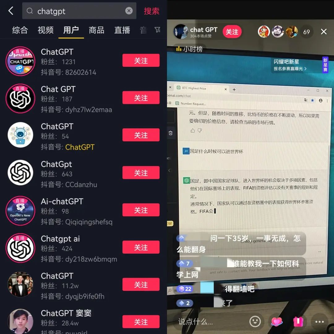 另一批用户在获得ChatGPT账号之后,对其产出内容进行二次搬运转手,例如训练其代写论文,收费500元/6000字,以及在抖音上直播代问,进而通过挂小黄车链接、引流或是贩卖教程等途径变现。