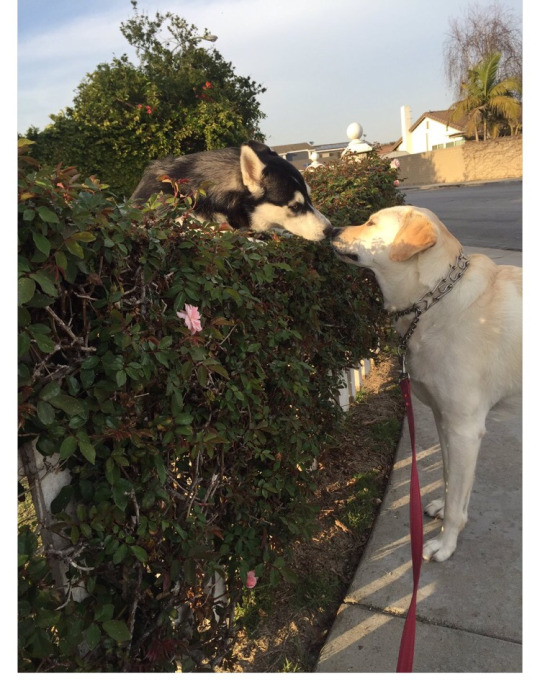 古往今来,电影文学描述过许多动人的人类爱情故事,但是你见过狗狗的爱情故事吗?一位Twitter网友就讲述了自家狗狗的经历:每天当他出门遛狗时,这只小母狗总会在一片花墙外停下来,等待那位邻家“王子”的出现,并给它一个甜蜜的嗅嗅:“这简直就是罗密欧与朱丽叶的故事。”