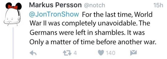 “我最后再告诉你一遍,二战无论如何是无法避免的,当时的德国正处于混乱状态,开战只是时间问题。”