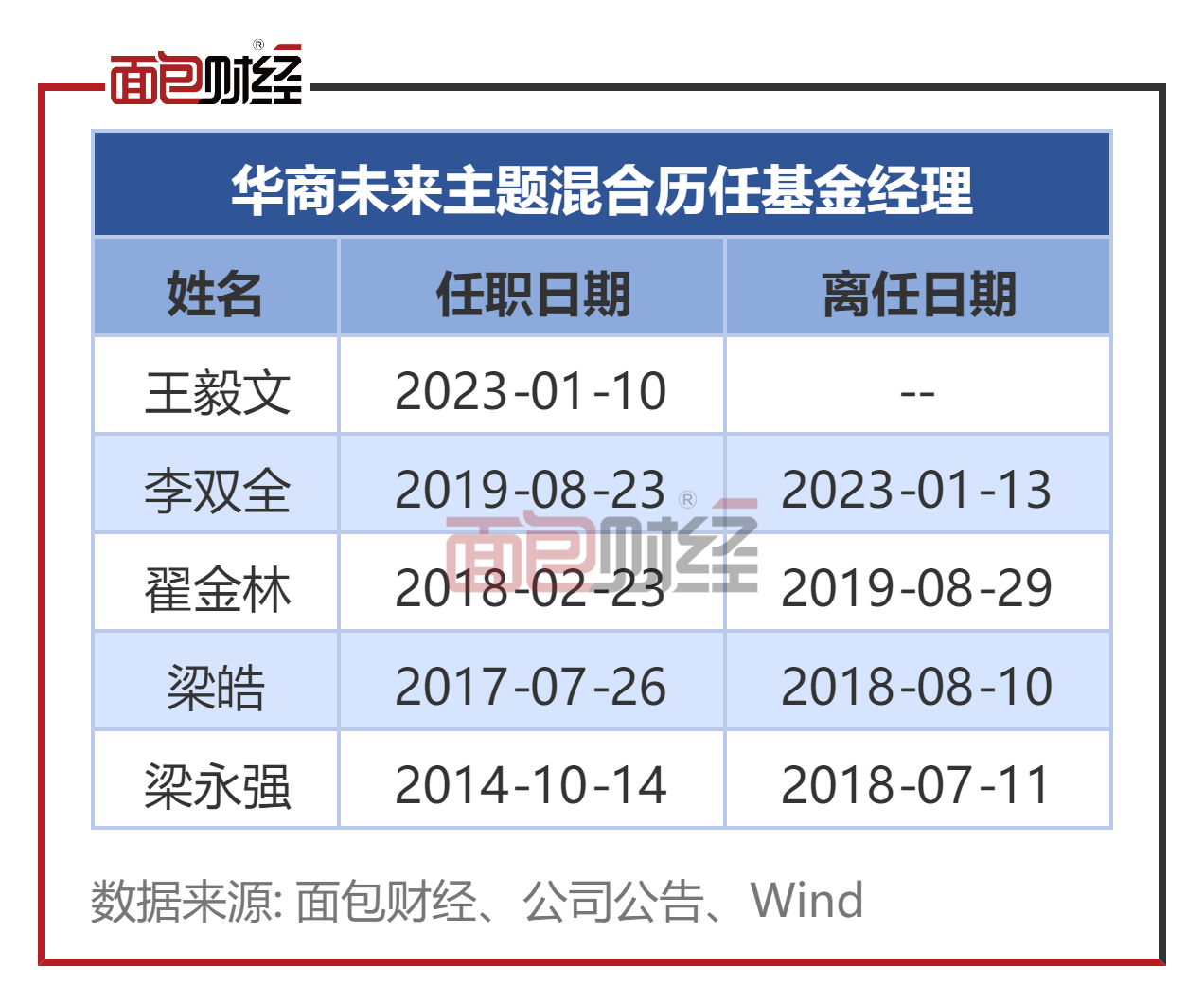 2023年1月10日,王毅文被增聘为华商未来主题混合的基金经理,与李双全共同管理该产品。几天之后,李双全因个人原因离任。