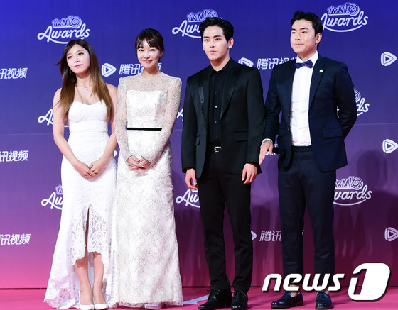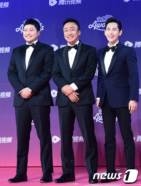 荣获综艺大奖的《三时三餐》主创人员亮相。车胜元(左二)上台时一度说不出话,似乎内心非常激动。