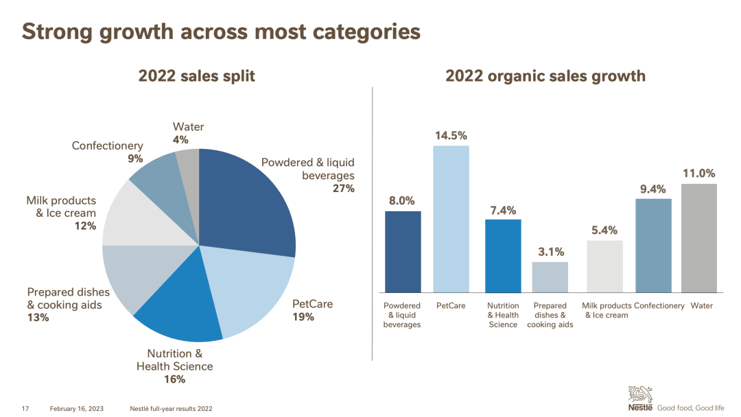今天下午,全球最大食品公司雀巢发布了2022年全年财报。在主要受定价驱动下,其实现了“20多年来最快的销售收入增长”。