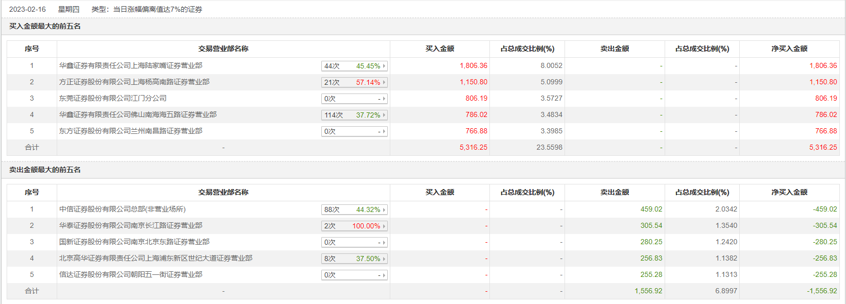 具体来看,华鑫证券上海陆家嘴证券营业部、方正证券上海杨高南路证券营业部分别买入1806.36万元、1150.80万元;中信证券总部(非营业场所)、华泰证券南京长江路证券营业部分别卖出459.02万元、305.54万元。