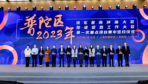 2023年2月16日下午,上海普陀区2023年优化营商环境暨投资促进工作大会在上海跨国采购会展中心举行。