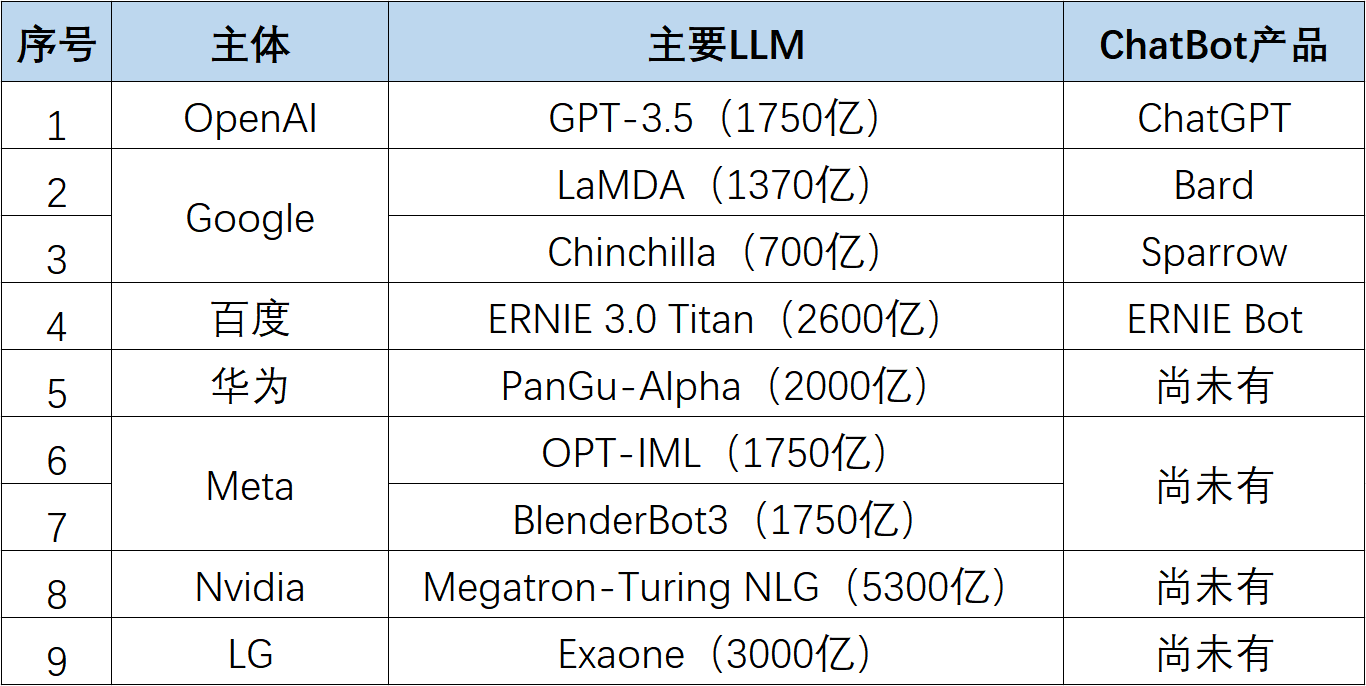 “智能相对论”总结目前市面上领先的NLP大模型以及ChatBot产品如下: