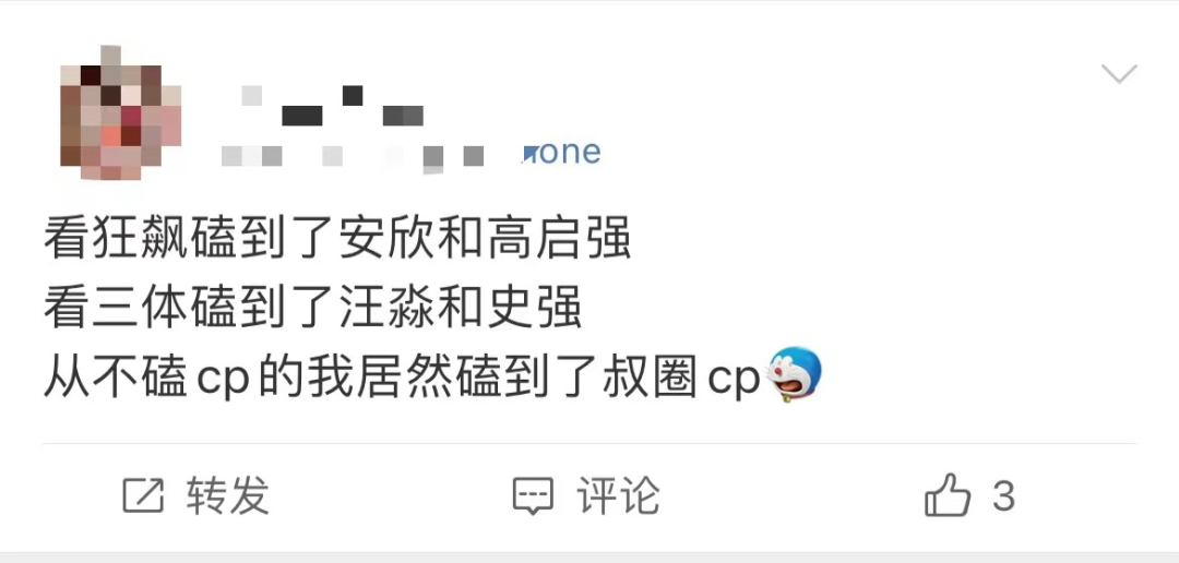 在同人社区LOFTER的热搜榜和热门影视榜上,《狂飙》牢牢占据着首位。除此之外,《三体》中的史强汪淼CP、《流浪地球》张鹏诺夫C也成了一部分心中的叔圈CP天花板。“从不磕CP的我居然磕到了叔圈CP”,有微博网友感慨到。