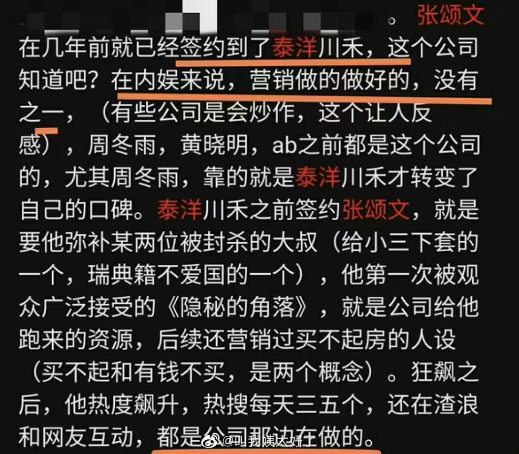 作为张颂文走红的幕后推手,经纪公司泰洋川禾也被网友所关注。网络上同样有爆料称公司对他的定位在于填补市场对“雅痞大叔”的需求。尚且不论传闻是否属实,要知道在2018年腾讯新闻举办的叔圈101中吴某波可是稳居C位,可见市场对此类演员的喜爱。至于能否走通这条路,还需要更长的时间来观察。