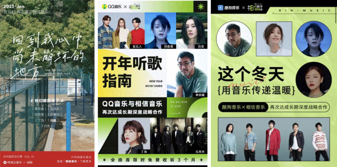 而事实上,去年行业反垄断的成果也在今年收获了初步成效,上个月的元旦,五月天、李宗盛所在的相信音乐就分别与网易云、QQ音乐、酷狗音乐都达成了长期战略合作,2023“新年新气象”,这种唱片公司开放版权给多平台的合作往后或将常态化。