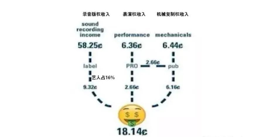事实上,国内音乐版权采买之所以障碍重重,也是因为国内尚未建立合理的音乐版权收入管理和分配机制。与之相比,欧美音乐界建立的版权分账模式更为科学,它把音乐版权细分为词曲版权、录音版权、机械复制权、公开表演权、平台抽成等,严格规定了唱片公司、音乐平台、词曲作者、演出歌手能获得的版权收入比例。