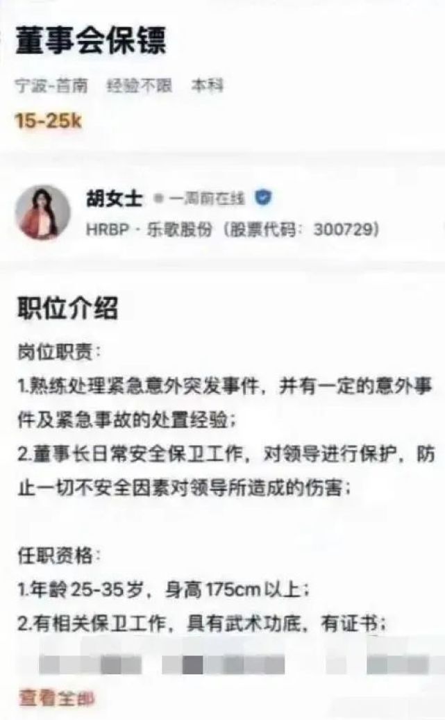 近日,A股一家上市公司发布的董事会保镖招聘信息在互联网上吸睛不少,发布这则招聘信息的上市公司正是乐歌股份。