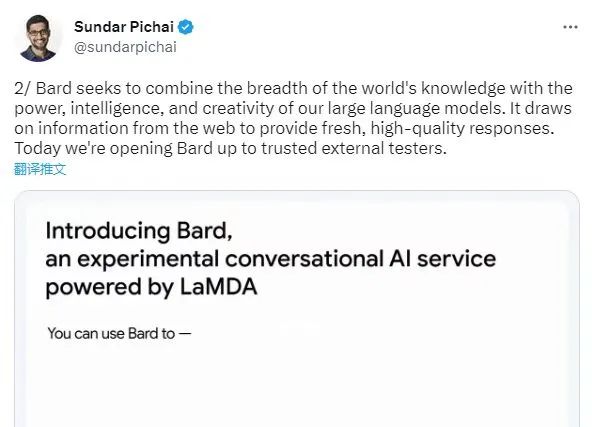 谷歌第一个烧!火力全开数月后,于2月7日,谷歌通过Twitter发布了一个在线短视频广告,推广其旗下AI聊天机器人Bard。