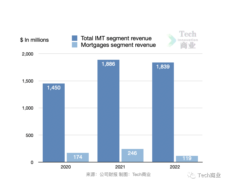 从收入结构来看,Zillow收入主要来自IMT(互联网、媒体和技术)业务、抵押贷款业务。