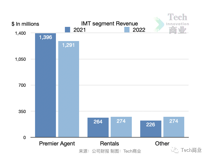 可以看到本财年该公司IMT三项收入来源中,经纪人项目Premier Agent一项收入为下降,其他两项表现为增长。