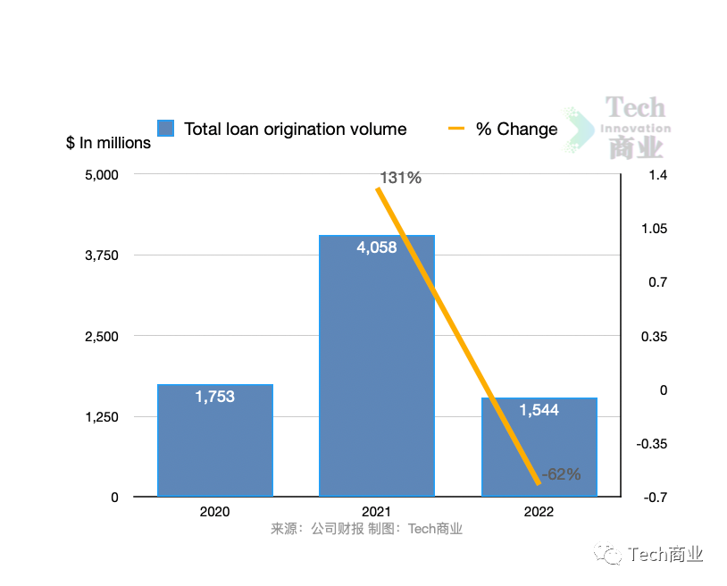 再融资贷款发放量2022财年为7.5亿美元,2021财年该项为30.2亿美元,本财年该项减少75%。而2021财年相较2020财年表现为增长149%。