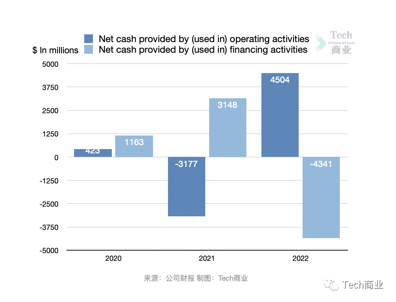 该公司本财年经营活动现金流表现为净流入45亿美元,上一财年同期经营活动现金流净流出32亿美元。2022财年该公司用于融资的现金流为43亿美元,而上一财年同期融资提供现金流31亿美元。