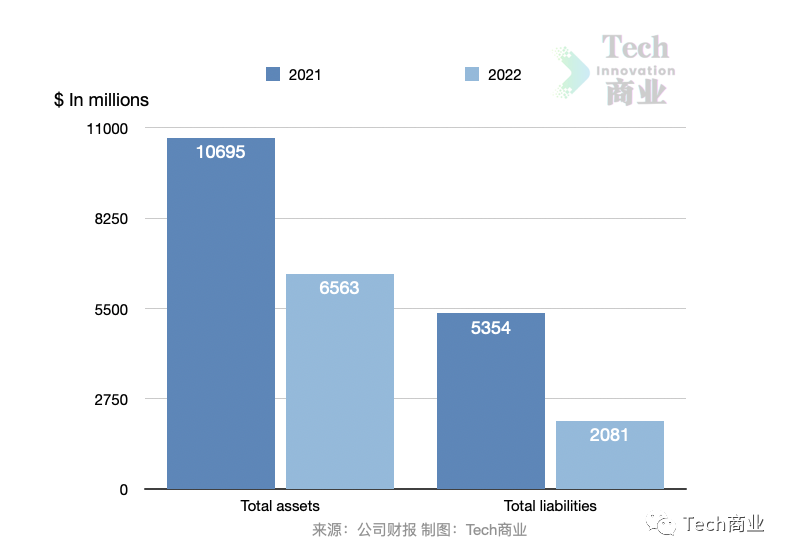 本财年该公司总资产额为65.6亿美元,相较2021财年时期的107.0亿美元,表现总资产减少39%。总负债方面2022财年为20.8亿美元,相较上一财年负债减少61%。