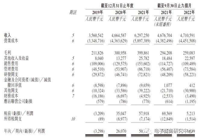 招股书显示,维天运通2019年、2020年、2021年营收分别为35.61亿元、46.65亿、62.97亿;期内利润分别为-330万元、2607万元、5074万元;经调整利润分别为-179.5万元、4137万元、8731万元;维天运通2022年前9个月营收为47.1亿元,上年同期的营收为46.77亿元;期内利润为370万元,上年同期的期内利润为5672万元,同比下降93.5%。